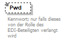 source | <xsd:element name="Pwd" minOccurs="0"> <xsd:annotation> <xsd:documentation xml:lang="DE">Kennwort; nur falls dieses von der Rolle des EDI-Beteiligten verlangt wird</xsd:documentation> <xsd:documentation xml:lang="EN">Needs only to be set if required by the specified role.</xsd:documentation> </xsd:annotation> <xsd:simpleType> <xsd:restriction base="xsd:string"> <xsd:minLength value="1"/> <xsd:maxLength value="17"/> </xsd:restriction> </xsd:simpleType> </xsd:element> |