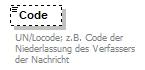 source | <xs:element name="Code" minOccurs="0"> <xs:annotation> <xs:documentation xml:lang="DE">UN/Locode; z.B. Code der Niederlassung des Verfassers der Nachricht</xs:documentation> <xs:documentation xml:lang="EN">UN/Locode; e.g. the location of the user's branch office.</xs:documentation> </xs:annotation> <xs:simpleType> <xs:restriction base="xsd:string"> <xs:minLength value="1"/> <xs:maxLength value="5"/> </xs:restriction> </xs:simpleType> </xs:element> |