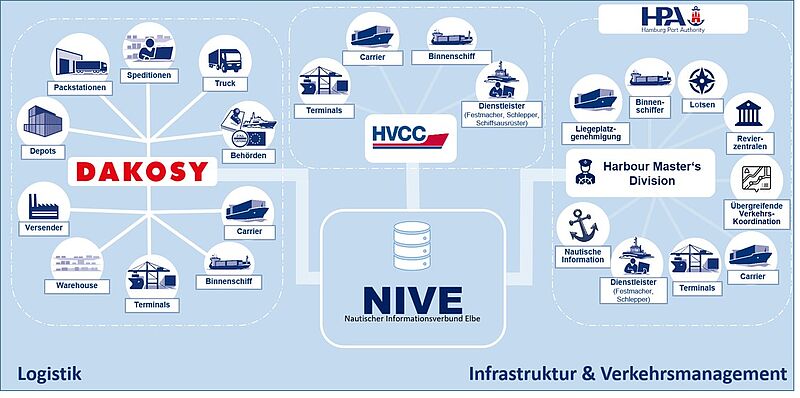 Insgesamt wollen DAKOSY und die HPA in dem Projekt sechs Maßnahmen umsetzen, um die Ablaufsteuerung zu Wasser, auf der Straße und auf der Schiene zu optimieren. Mit an Bord sind als assoziierte Partner die Terminalbetreiber HHLA und EUROGATE sowie das für die Schiffskoordination verantwortliche Hamburg Vessel Coordination Center (HVCC). „Ihre Beteiligung ist für den Erfolg des Projekts von großer Bedeutung, da sie als Prozessbeteiligte die Services und Daten nutzen“, verdeutlicht HPA-Projektleiterin Dr. Phanthian Zuesongdham.