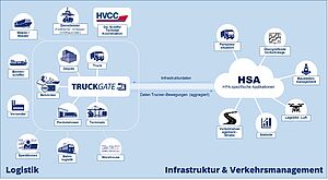 Bereitstellung von Plandaten und aktuellen Informationen über Truckbewegungen, d.h. über die Nutzung einzelner Sektoren der Infrastruktur für ein aktives Verkehrsmanagement